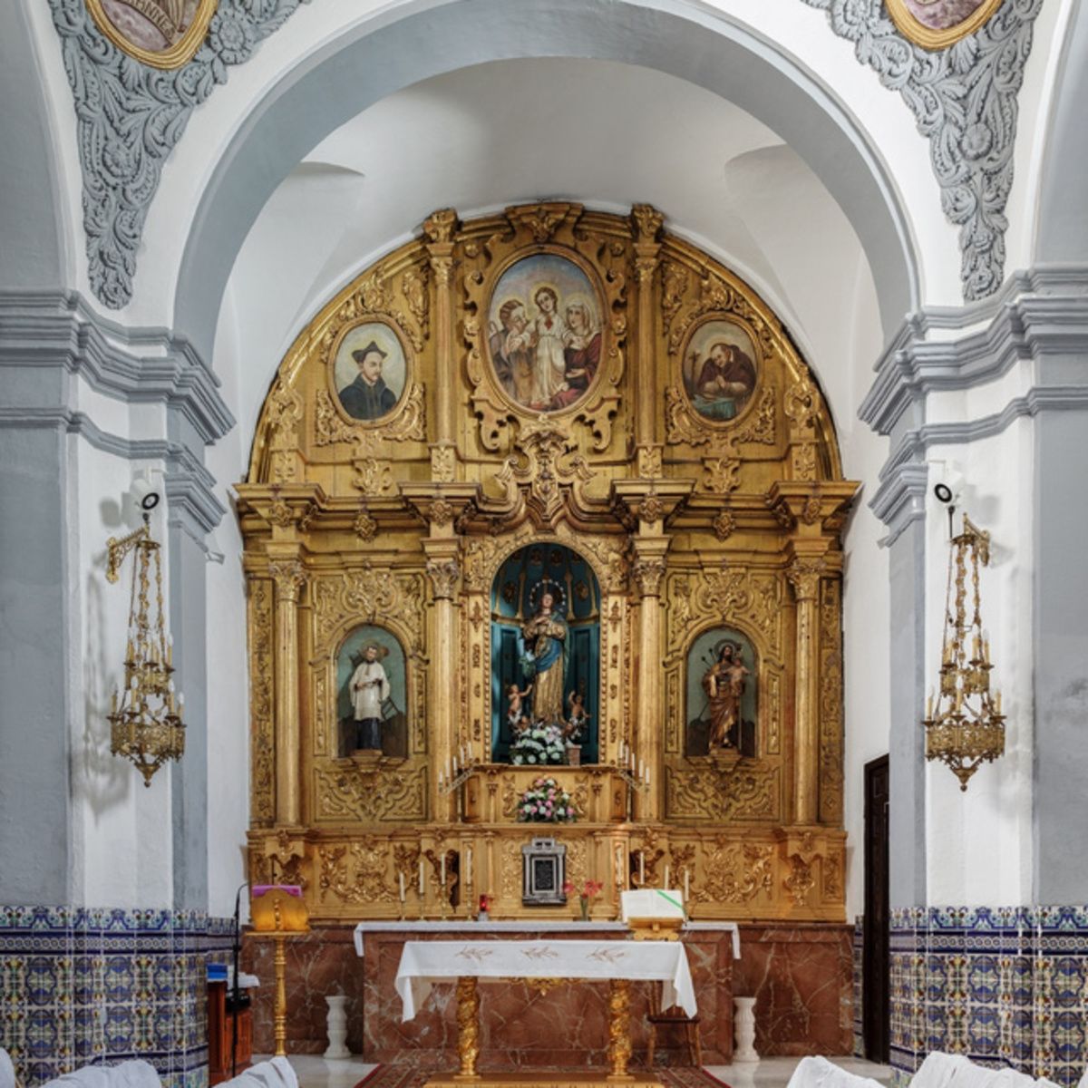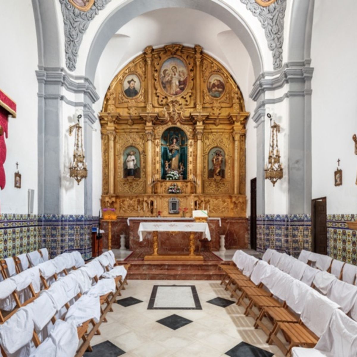 Esta iglesia fue construida en el tercer cuarto del siglo XVII; un siglo más tarde fue remodelada. Consta de una sola nava de cinco tramos cubierto con bóveda de cañón con lunetos en el cuerpo de la nave y en la capilla mayor, en el presbiterio, apareciendo una bóveda semiesférica en el anteprebisterio o crucero y pechinas decoradas con yeserías que enmarcan símbolos de los evangelistas.El interior, se sustenta con pilastras toscanas.