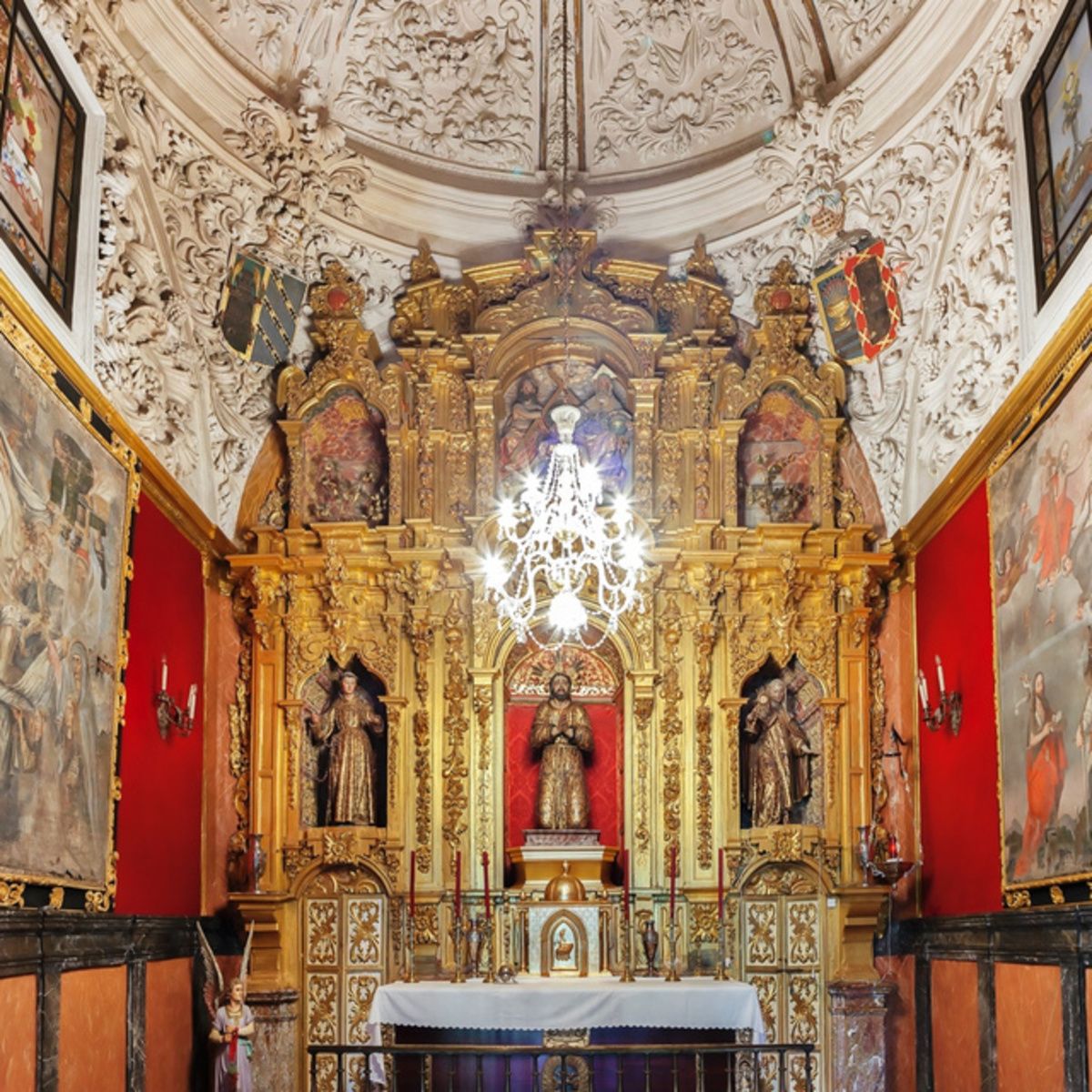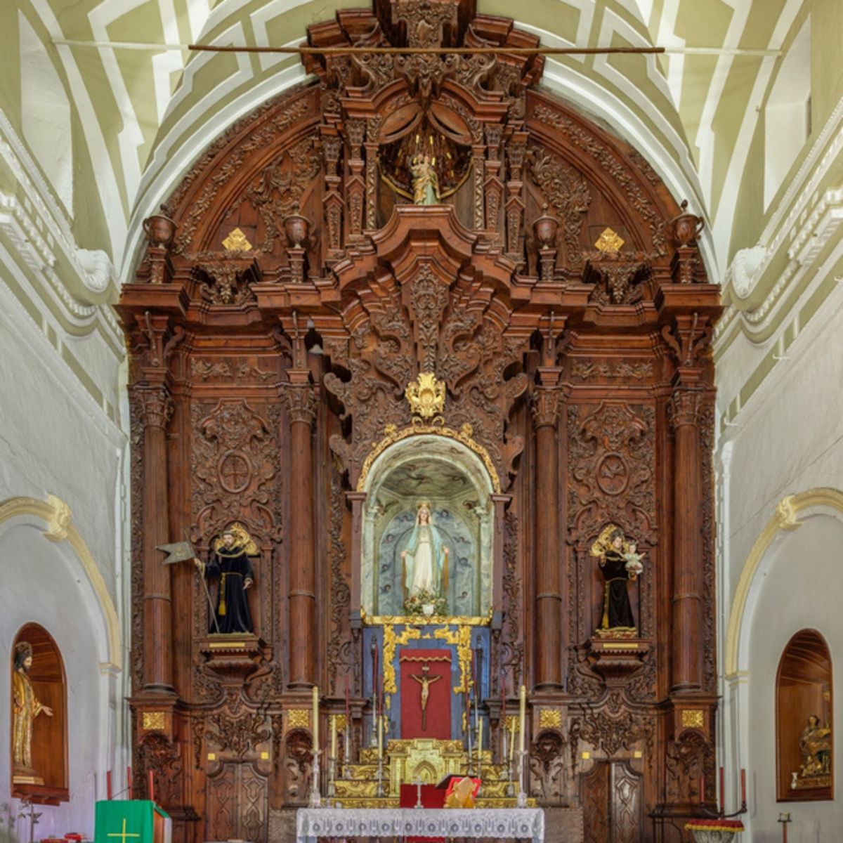 Las calles laterales albergan esculturas de San Francisco y San Antonio que datan del siglo XVIII.