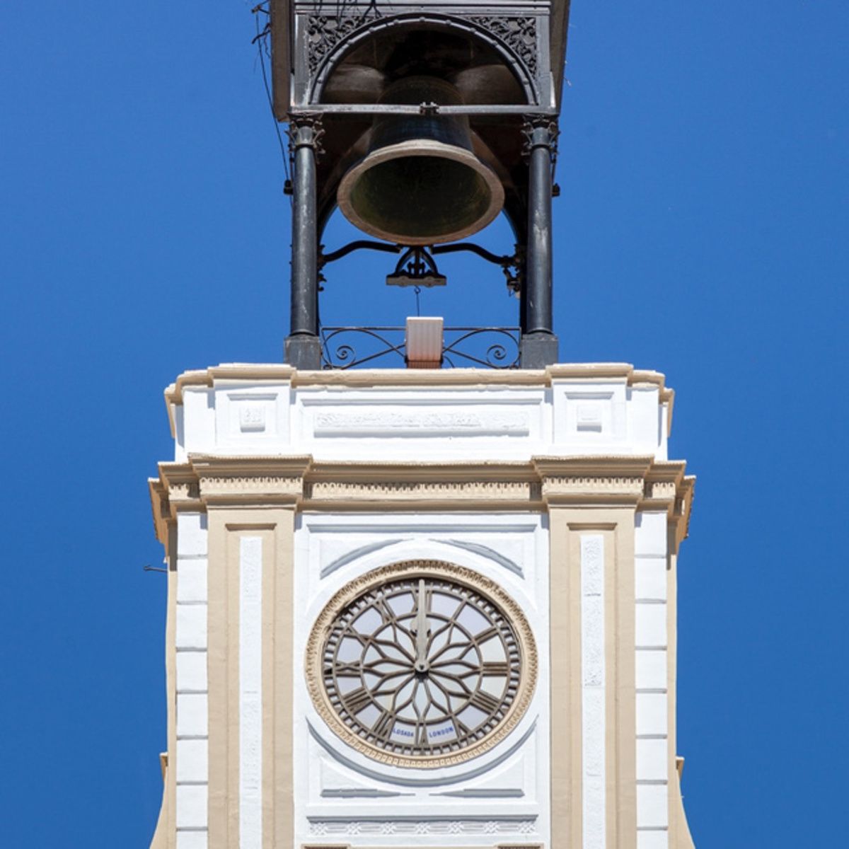 Este magnífico reloj es muy parecido al famoso de la Puerta del Sol madrileña, ya que la marca es la misma.