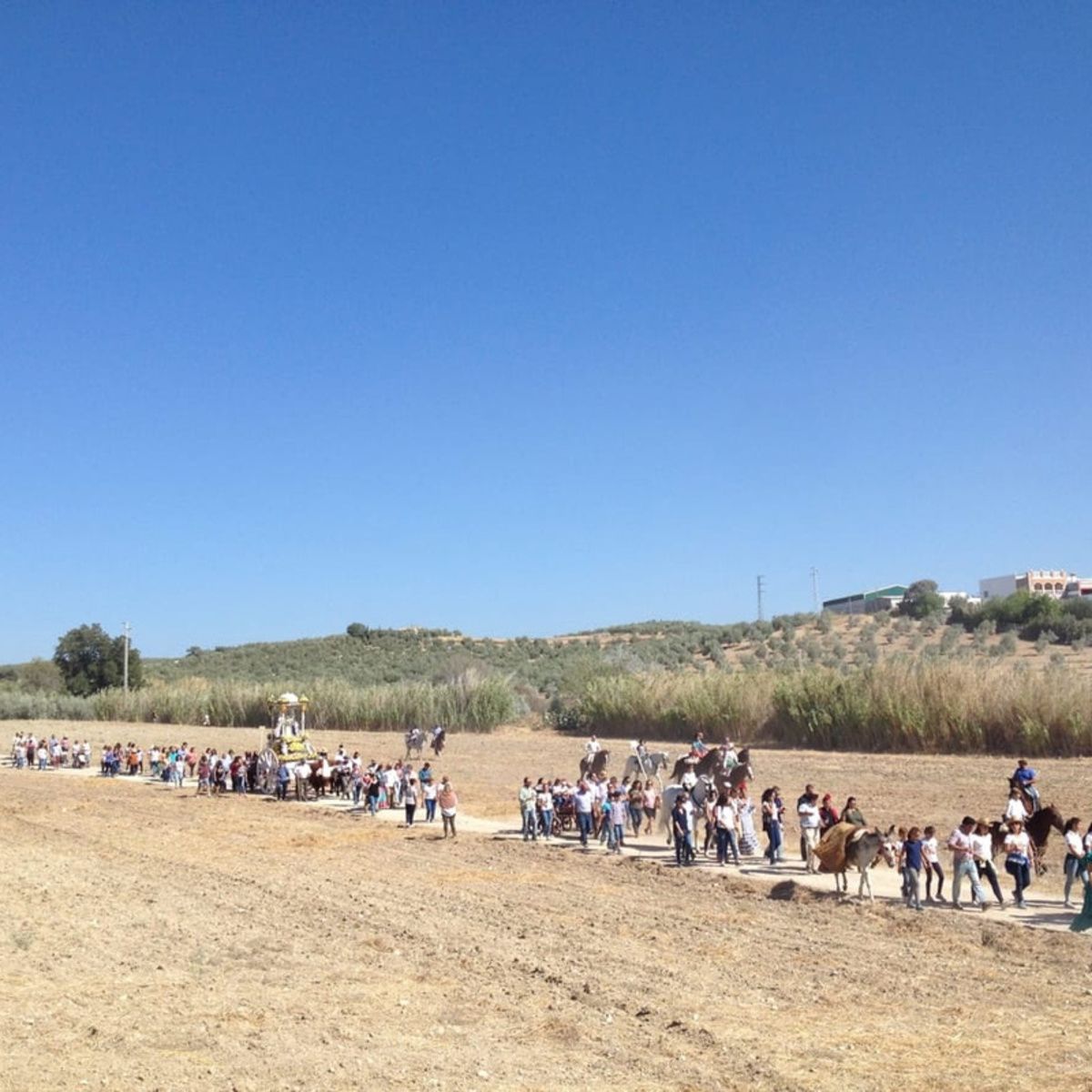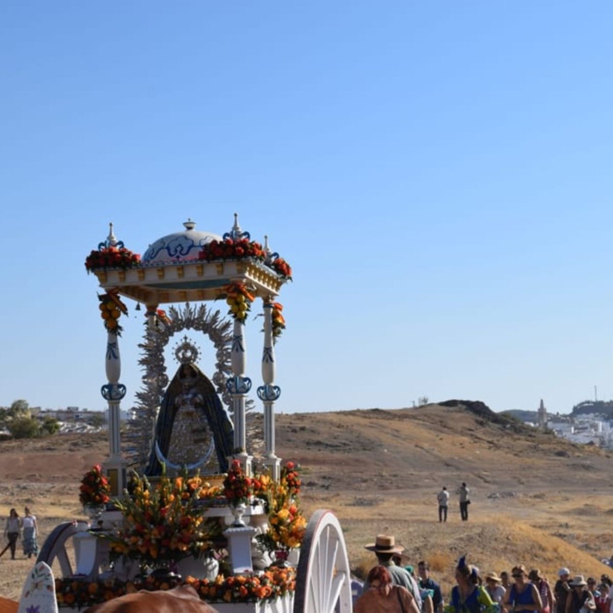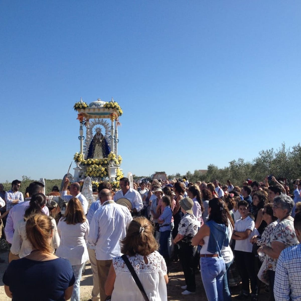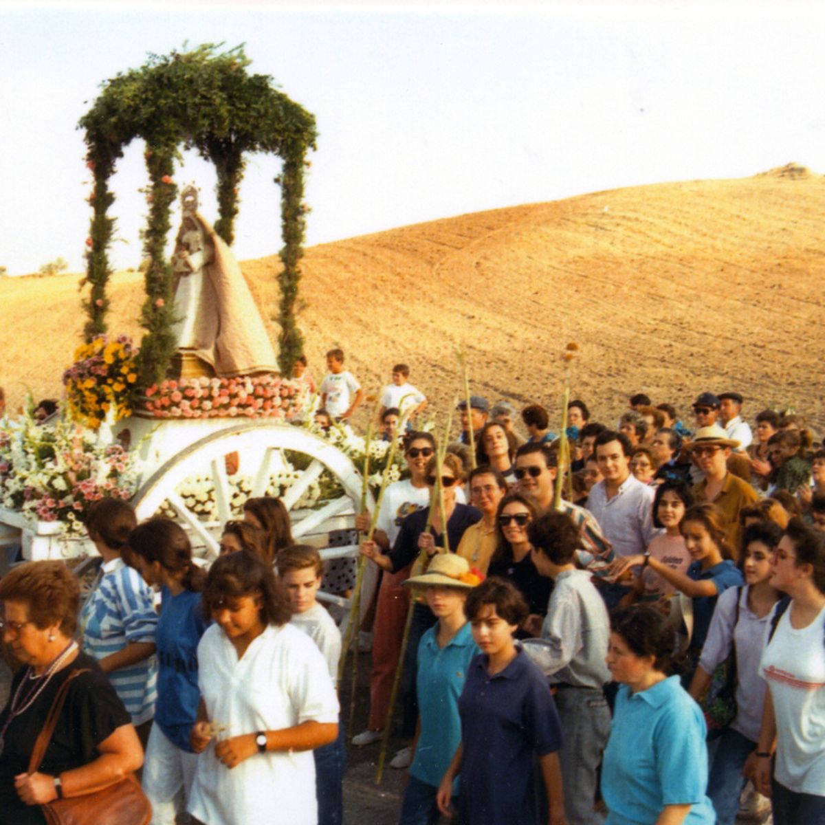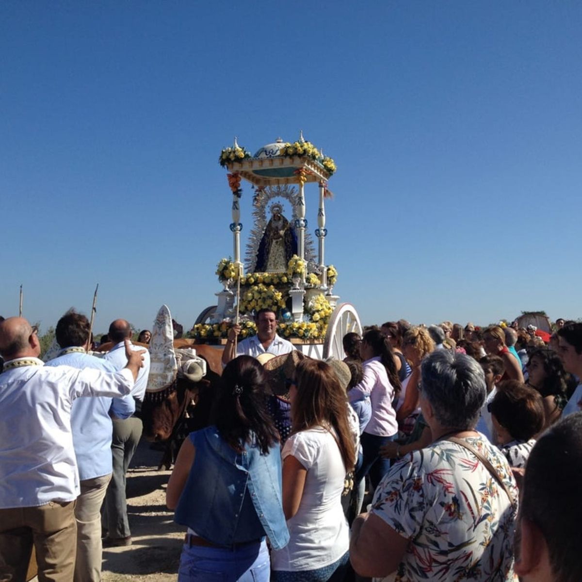 En septiembre del año 1900 hay constancia del traslado de la Virgen desde la iglesia parroquial de San Miguel hasta su Ermita de Guadaíra, con motivo de la inauguración de la restauración realizada aquel año, pero entendemos que este fue un hecho extraordinario que no da detalle de la tradicional romería del mes de octubre. Una de las referencias más antiguas que se han encontrado data de 1906. En la edición del 16 de octubre, se publica en El Correo Español una crónica de la romería de ese año, celebrada el día 14, detallando pormenorizadamente la estructura del acto: una misa a las seis de la mañana en la parroquia de San Miguel, posterior peregrinación (sin la Virgen) hasta la ermita, donde a las diez se celebra una santa Misa y a las tres de la tarde una procesión con la imagen de la Virgen. Los peregrinos celebraban el día hasta bien entrada la tarde, cuando ya regresaban a Morón de forma particular. Este formato de celebración se mantendría varios años, el segundo domingo de octubre, aunque la misa del alba no consta que se celebrara todos los años.