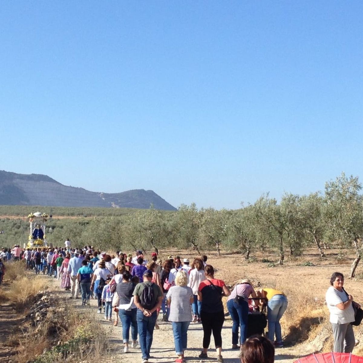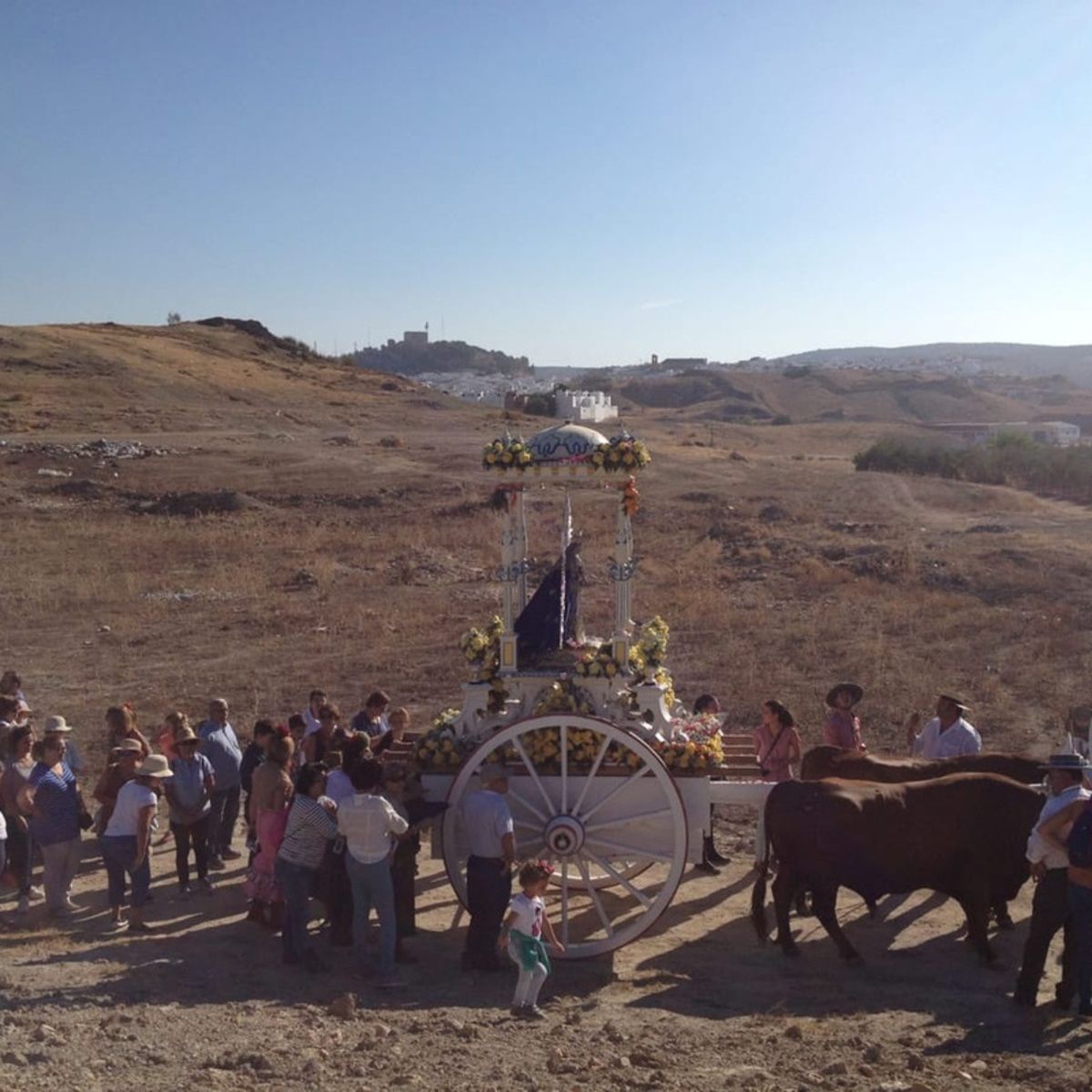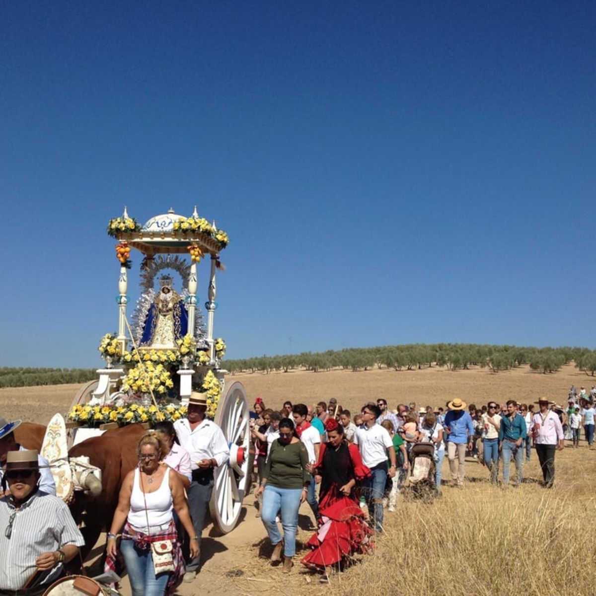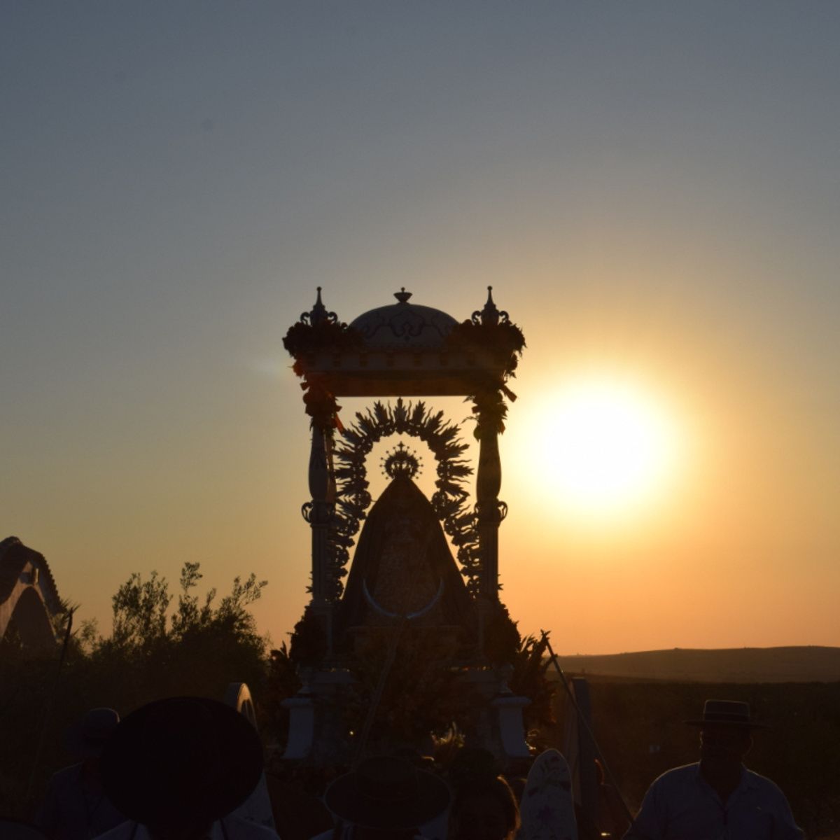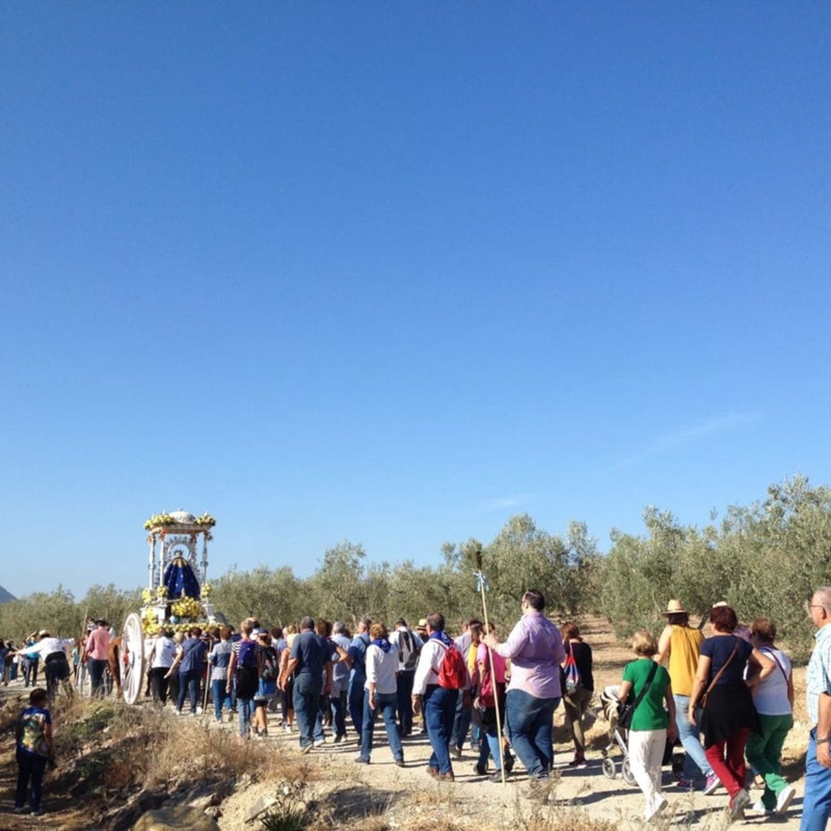 En septiembre del año 1900 hay constancia del traslado de la Virgen desde la iglesia parroquial de San Miguel hasta su Ermita de Guadaíra, con motivo de la inauguración de la restauración realizada aquel año, pero entendemos que este fue un hecho extraordinario que no da detalle de la tradicional romería del mes de octubre. Una de las referencias más antiguas que se han encontrado data de 1906. En la edición del 16 de octubre, se publica en El Correo Español una crónica de la romería de ese año, celebrada el día 14, detallando pormenorizadamente la estructura del acto: una misa a las seis de la mañana en la parroquia de San Miguel, posterior peregrinación (sin la Virgen) hasta la ermita, donde a las diez se celebra una santa Misa y a las tres de la tarde una procesión con la imagen de la Virgen. Los peregrinos celebraban el día hasta bien entrada la tarde, cuando ya regresaban a Morón de forma particular. Este formato de celebración se mantendría varios años, el segundo domingo de octubre, aunque la misa del alba no consta que se celebrara todos los años.