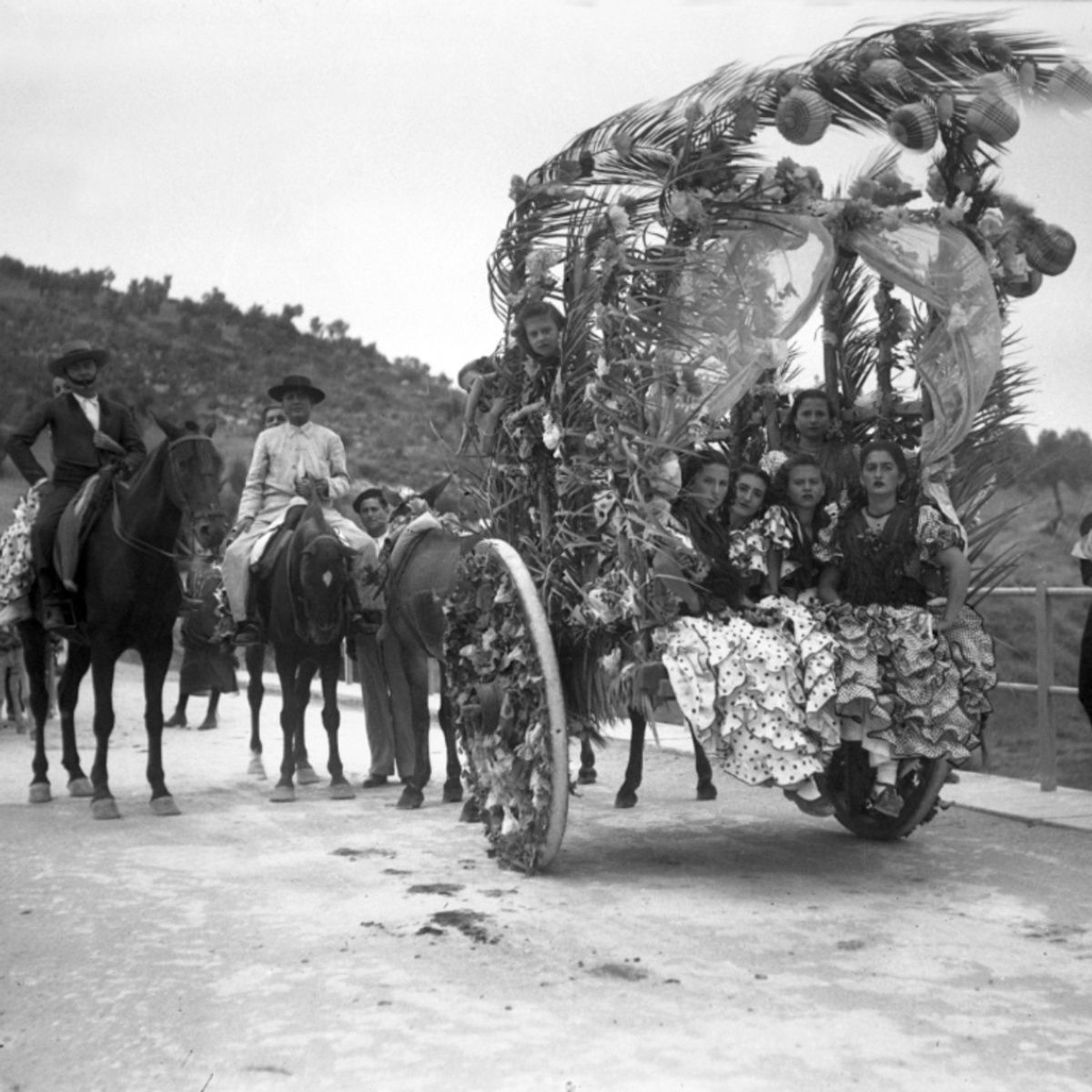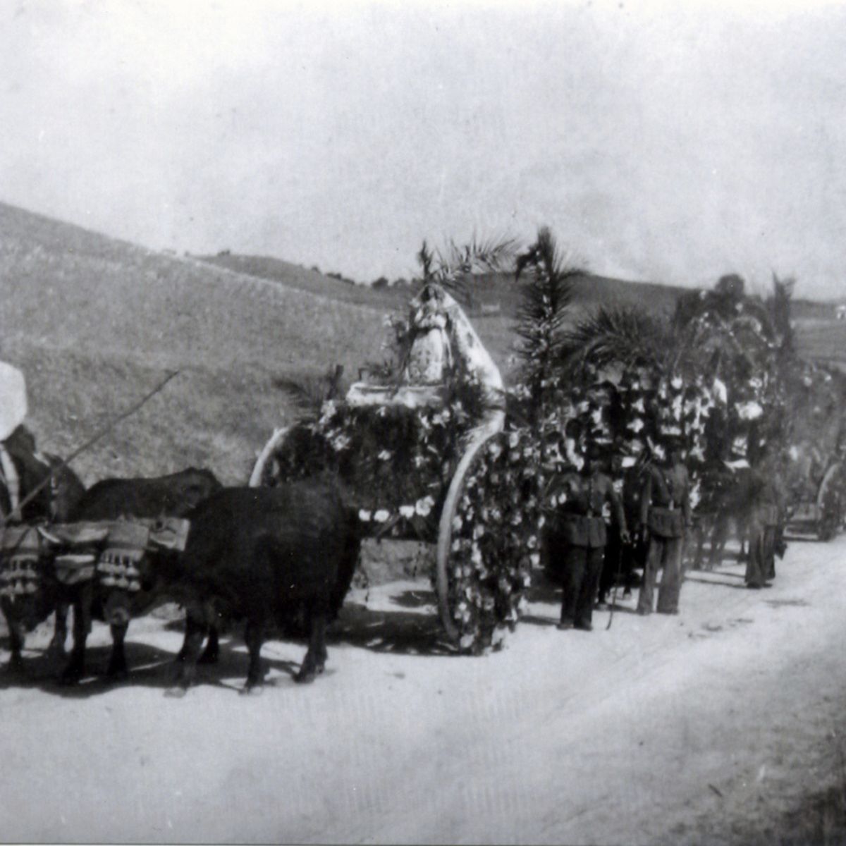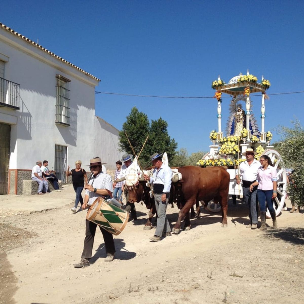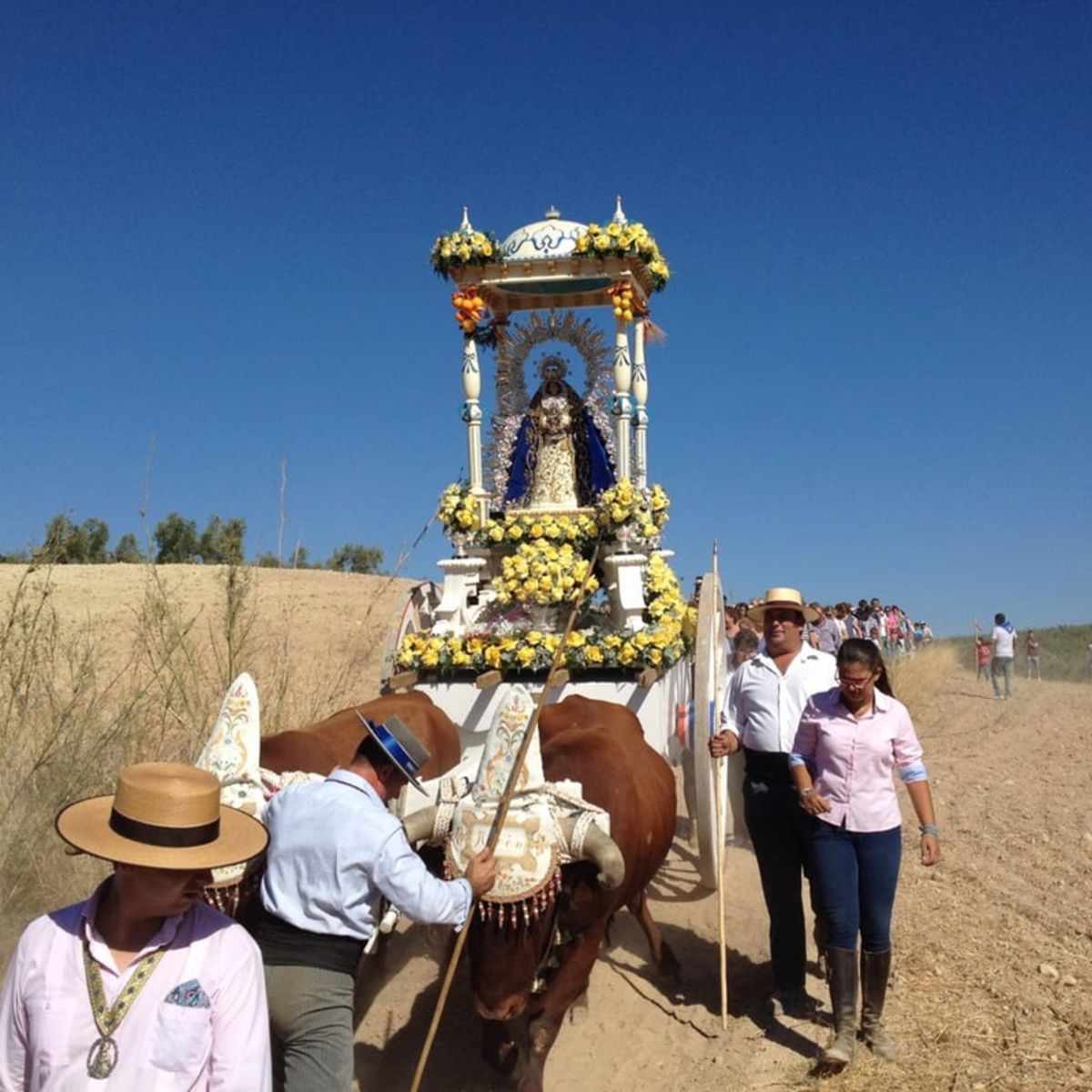 Desconocemos la forma en la que continuó celebrándose en la década de los 40, pero en la reorganización de 1955, pues llevaba varios años sin celebrarse, se asentó la idea de celebrar la romería con la imagen de la Virgen en carreta tirada por bueyes. Los romeros, tras celebrar misa en la iglesia de la Victoria, peregrinaban junto a la imagen hasta llegar a la ermita, donde se celebraba de nuevo la Eucaristía. Posteriormente la Virgen era sacada procesionalmente hasta la fuente del espino (junto a la venta de Guadaíra), y de allí de regreso a su ermita. En esta etapa, la vuelta al pueblo se estipulaba a una hora, encabezándose la comitiva con la imagen de la Virgen que volvía a la parroquia, retornando a la ermita días después de forma privada.