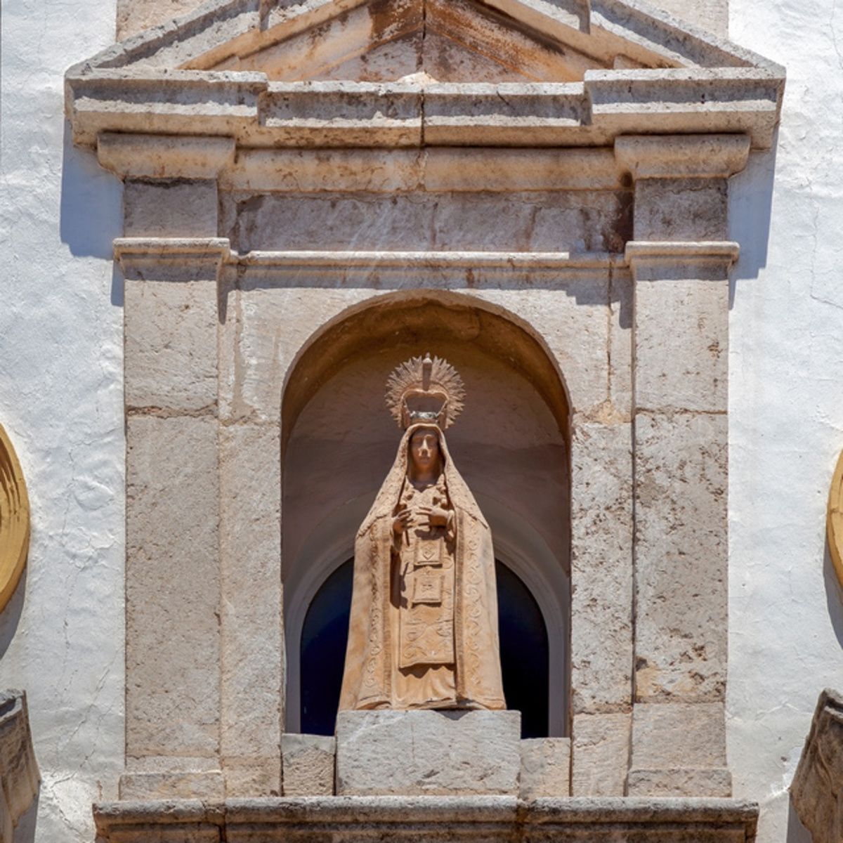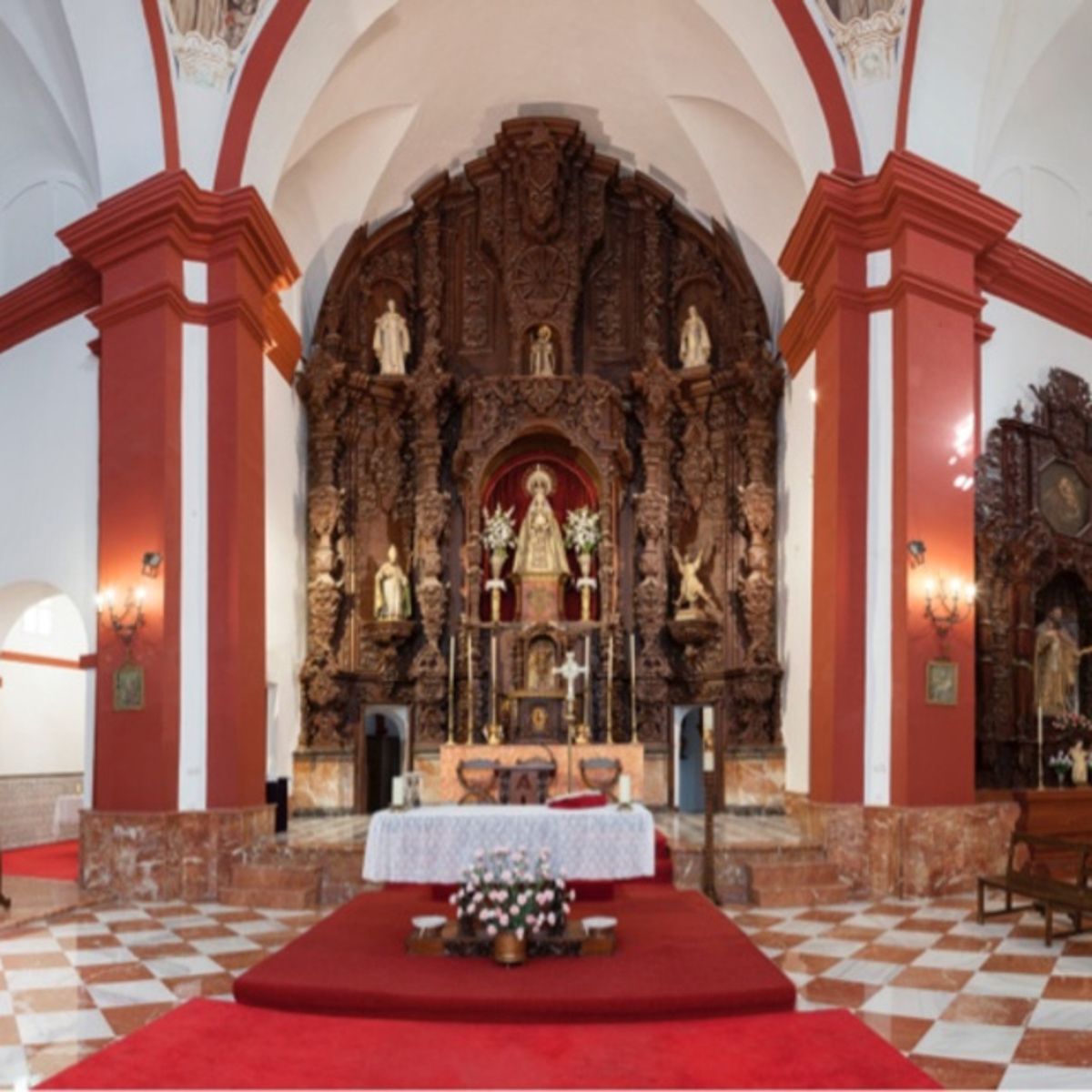 Dos retablos encontramos en el brazo del crucero. Dentro del situado en el centro localizamos imágenes de candelero de la Virgen Dolorosa, un Crucificado y un San Juan que pertenece a la cofradía del Calvario y Nuestra Señora del Mayor Dolor. En el mismo brazo, a la izquierda,María Magdalena, reciente y moderna. El del lado izquierdo es de finales del XVIII y en él descubrimos una escultura de San Ramón Nonato, del segundo cuarto del siglo XVIII en madera estofada. Contiene en el ático un lienzo de San José.
